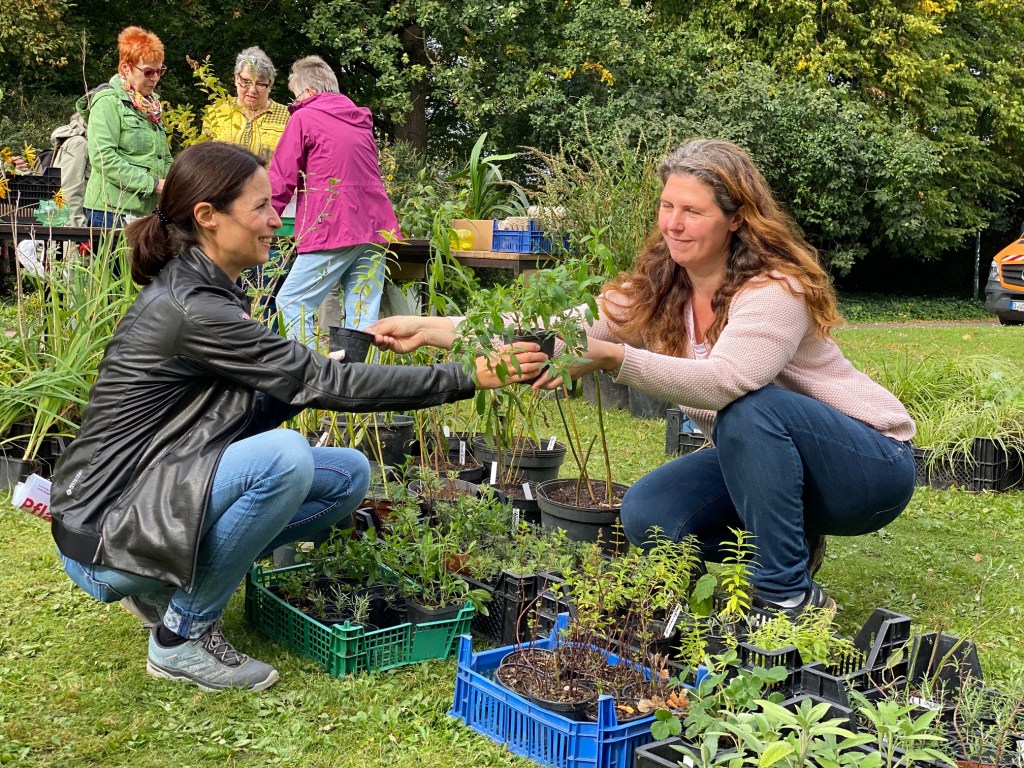 Jedes Jahr im September findet im und vor dem Biogarten die beliebte Pflanzentauschbörse statt, bei der Hobbygärtnerinnen und -gärtner ihre selbstgezogenen Stauden, Setzlinge oder Kräuter anbieten.
