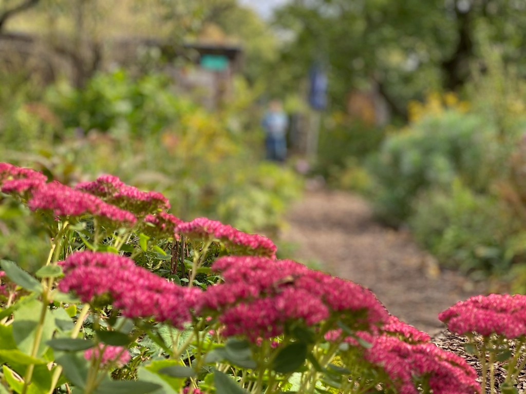 Als VHS sind wir sehr stolz darauf, einen Garten unser eigen zu nennen. Einen Biogarten, um genau zu sein. Gehegt und gepflegt wird unser im Südpark gelegenes Kleinod von unserer Kollegen Melissa. Die gelernte Gärtnerin mit dem Schwerpunkt Blumen- und Zierpflanzenbau kümmert sich seit 2015 bei Wind und Wetter um ihr 3.500 Quadratmeter großes Reich. Neben zahlreichen Stauden, Obstbäumen wie Apfel, Feige, Quitte und Sauerkirsche sowie verschiedene Gemüsesorten gibt es hier auch einen kleinen Teich, der Fröschen, Molchen und Enten ein zu Hause bietet.