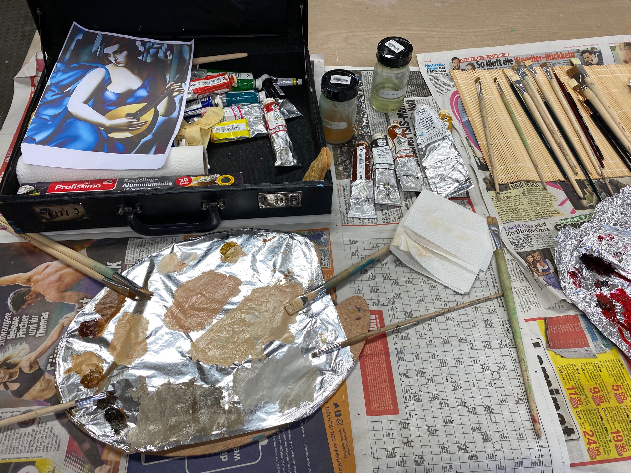 Seit sie selbst malt, hat sich Annas Blick auf die Kunst verändert. Denn obwohl sie anfangs von schweren, dunklen Werken wie beispielsweise von Caspar David Friedrich angezogen wurde, hat sich ihr eigener Stil ganz anders entwickelt. „Ich habe noch nie ein düsteres Bild gemalt“, stellt sie fest. Stattdessen entstehen unter ihrer Hand große, bunte Frauenmotive. Ihre aktuelle Arbeit ist von Tamara de Lempickas „La musicienne/Femme en bleu à la guitare (1929)“ inspiriert. Und wenn Anna jetzt in Ausstellungen geht, wandert ihr Blick immer häufiger zu den farbenfrohen Exponaten.