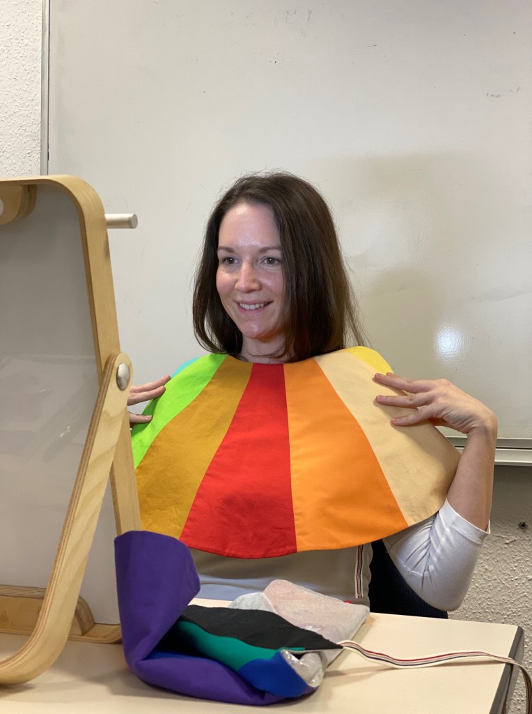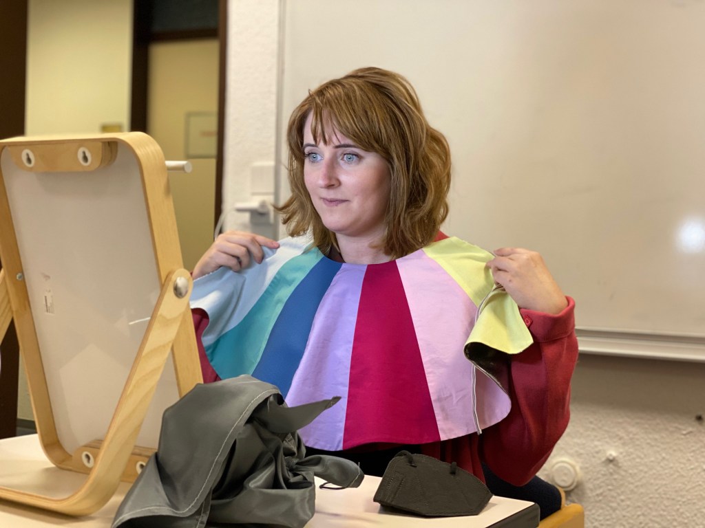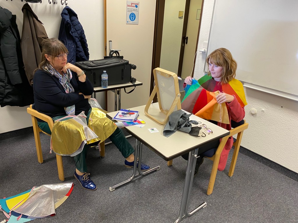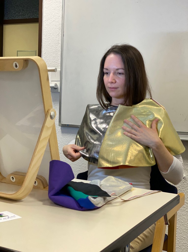 Farbige Umhänge helfen bei der Kategorisierung des Farbtyps. Steht dieser fest, können die Teilnehmerinnen mittels unifarbener Tücher die zu ihnen passenden Farben ausprobieren – und dabei manche Überraschung erleben. Denn oft entdecken sie dadurch neue Farben, die sie vorher nie getragen hätten.