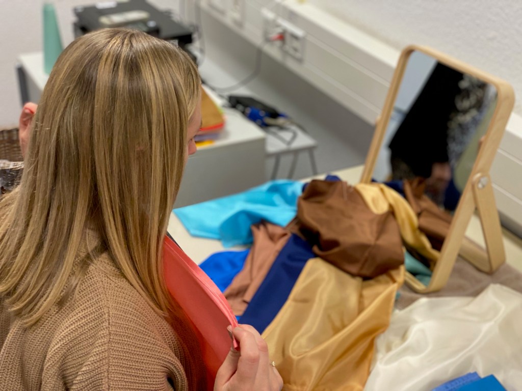 Mit Hilfe der Umhänge lernen die Teilnehmerinnen, ihren Farbtyp zu bestimmen.