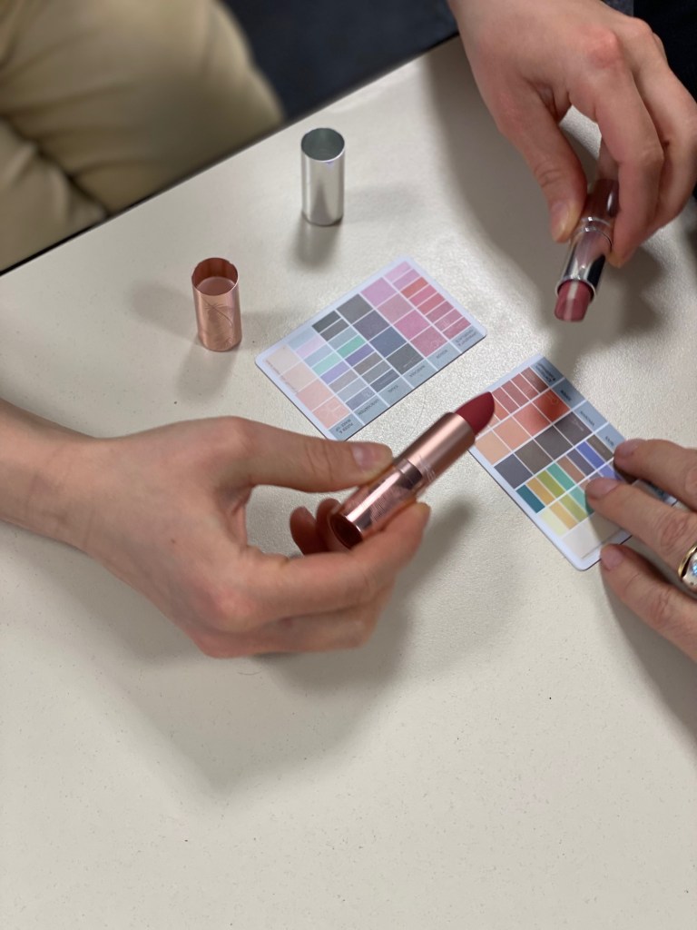 Nach einer kleinen Vorstellungsrunde führe ich in die Geschichte der Farbberatung ein. Die Teilnehmerinnen werden nach ihren Lieblingsfarben gefragt und ich erkläre das Farbschema. Dann werden die Damen mit Hilfe verschiedener Umhänge, die sie sich vor einem Spiegel sitzend umlegen, analysiert. Zuerst stellen wir fest, ob sie ein heller oder dunkler Gold- oder Silbertyp sind. Dann werden sie entsprechend der Jahreszeiten kategorisiert: Sommer- und Wintertyp verfügen über einen blautönigen Hautunterton und gehören zu den kalten Farbtypen. Frühlings- und Herbsttyp haben einen gelben Unterton und sind entsprechend warme Farbtypen. Jede Jahreszeit hat ihren eigenen Farbfächer, den ich mit der Kundin durchspreche.