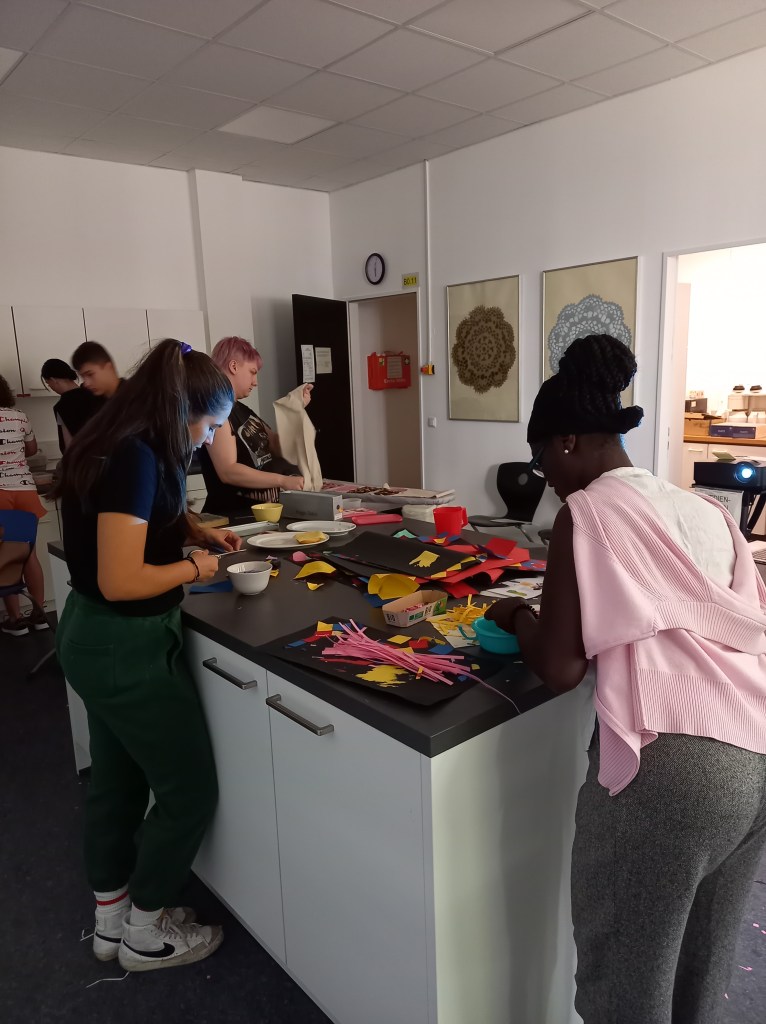 Insgesamt standen 15 verschiedene Aktionen zur Auswahl. Großes Interesse fand beispielsweise das Projekt „Papierrecycling“, das mit einer Doku und einem Quiz zum Thema Papierverbrauch und Wiederverwertung startete. Anschließend konnten die Teilnehmenden ihr eigenes Papier schöpfen und dieses mit Blüten, Düften und Blumensamen zu hochwertigem Dekopapier veredeln.