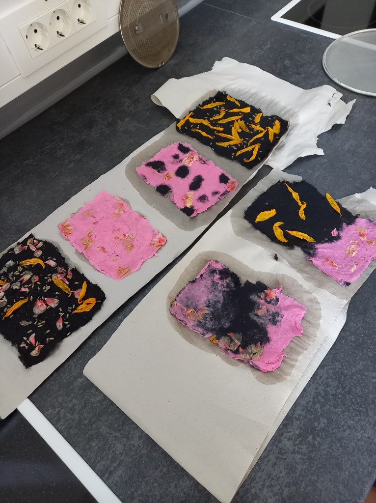 Aus selbst recyceltem Papier entsteht Kunst.