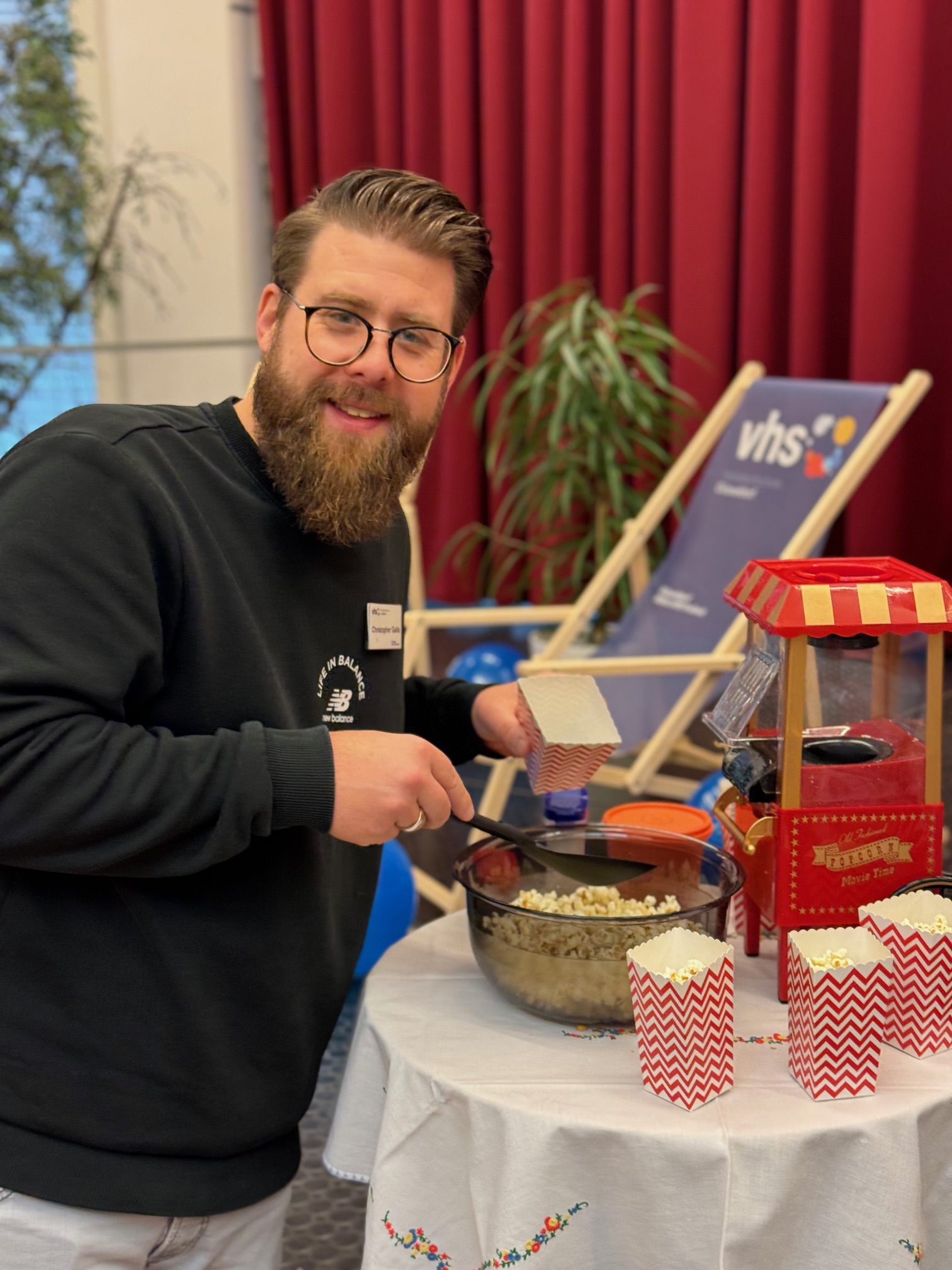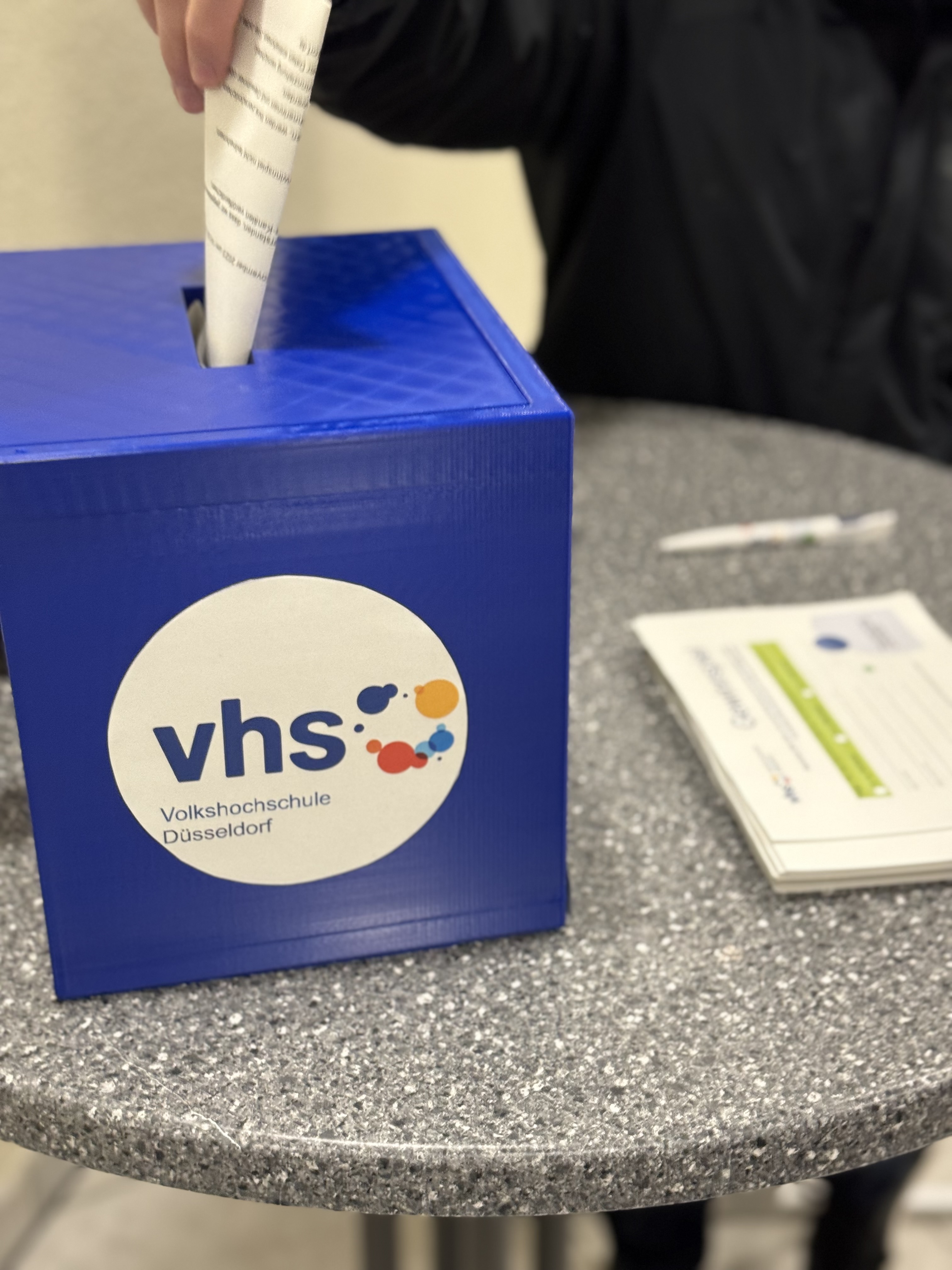 Gut angenommen wurde neben der Popcornmaschine und dem Büchertauschtisch auch unser Gewinnspiel, bei dem zwei Gutscheine für Veranstaltungen im Sprachenbereich im Wert von je 100 Euro verlost wurden. Gewonnen haben Milena und Dorothee, die die Frage, wie viele Sprachveranstaltungen die VHS in 2023 angeboten hat, mit „circa 2.000“ richtig beantwortet haben. Als weitere Antworten standen noch „circa 20“ und „circa 200“ Veranstaltungen zur Auswahl.
