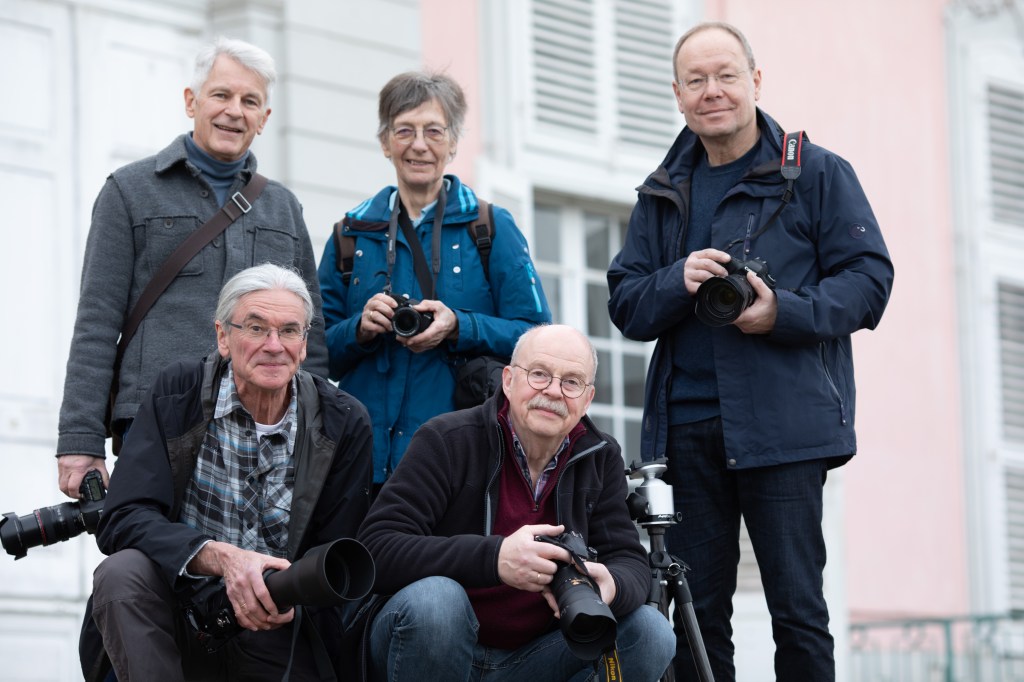 Karl, Uli, Catherine, Roland und Peter (v.l.n.r.) von der Fotogruppe Phos vor Schloss Benrath